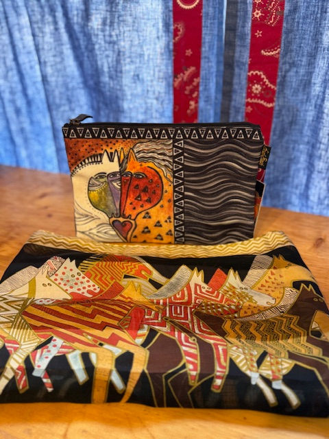 Laurel Burch Wild Horses of Fire silk scarf & Cosmetic Bag